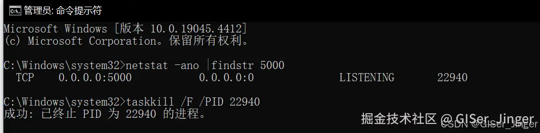 二、结束占用端口的程序