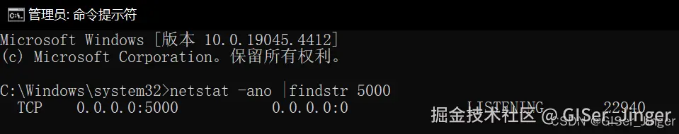netstat -ano命令并按下回车键。这将显示所有当前的网络连接、监听端口以及它们的进程ID(PID)。 - 如果要查看特定端口的占用情况,可以使用