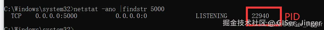 tasklist | findstr "PID"命令来查找,将“PID”替换为占用端口的进程的PID。