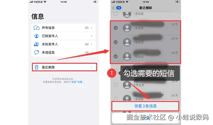 恢复短信删除内容方法一:最近删除功能