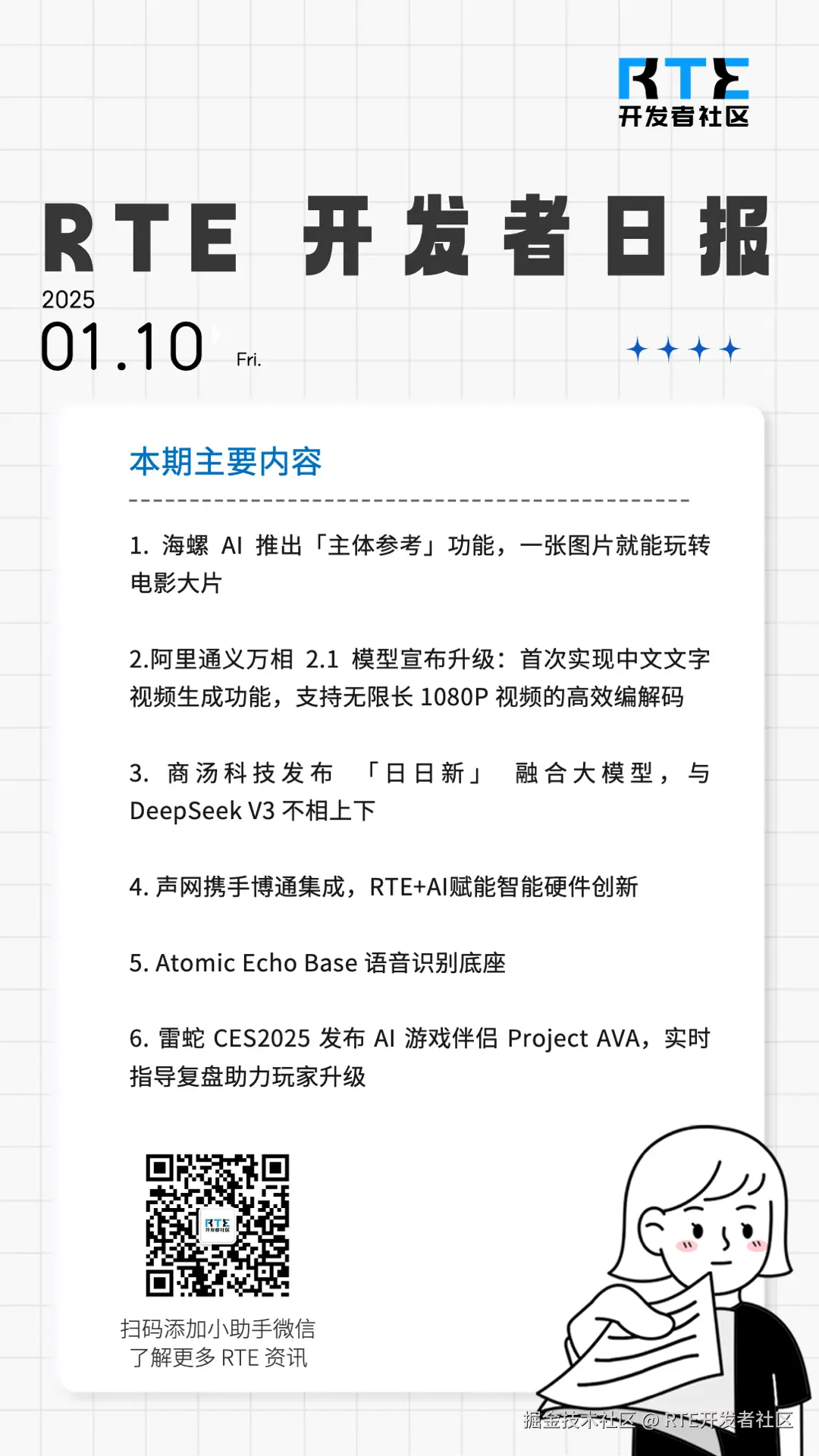 我们欢迎更多的小伙伴参与「RTE 开发者日报」内容的共创,感兴趣的朋友请通过开发者社区或公众号留言联系,记得报暗号「共创」。