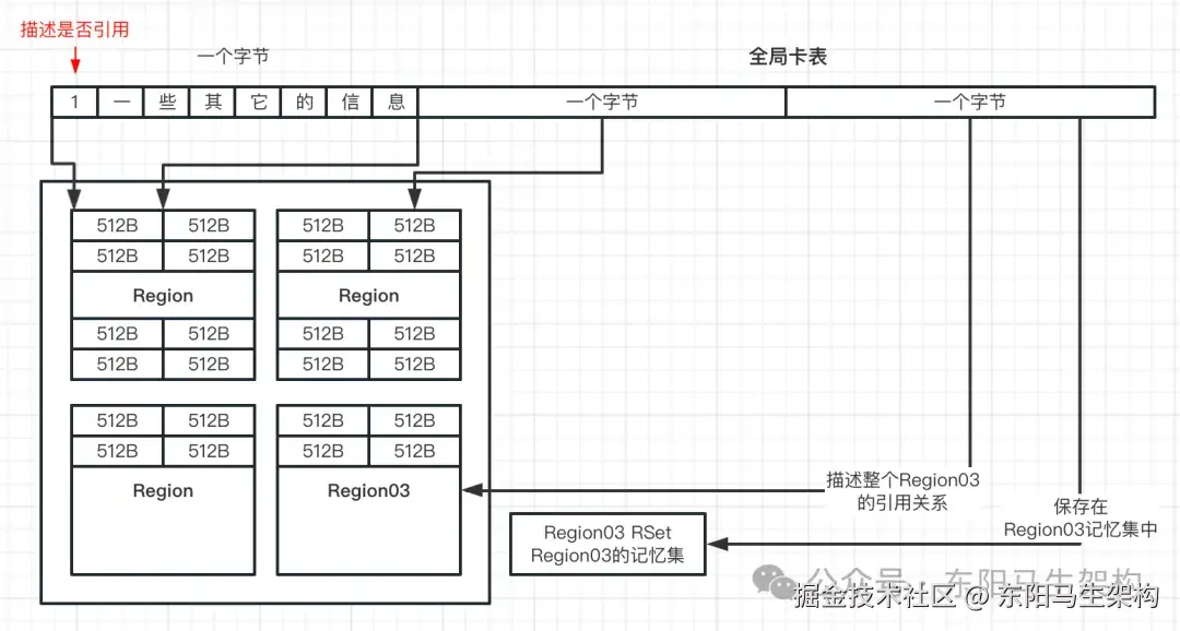 原因二.如果针对每个分代创建记忆集,因为Region不断变化可能有并发问题。