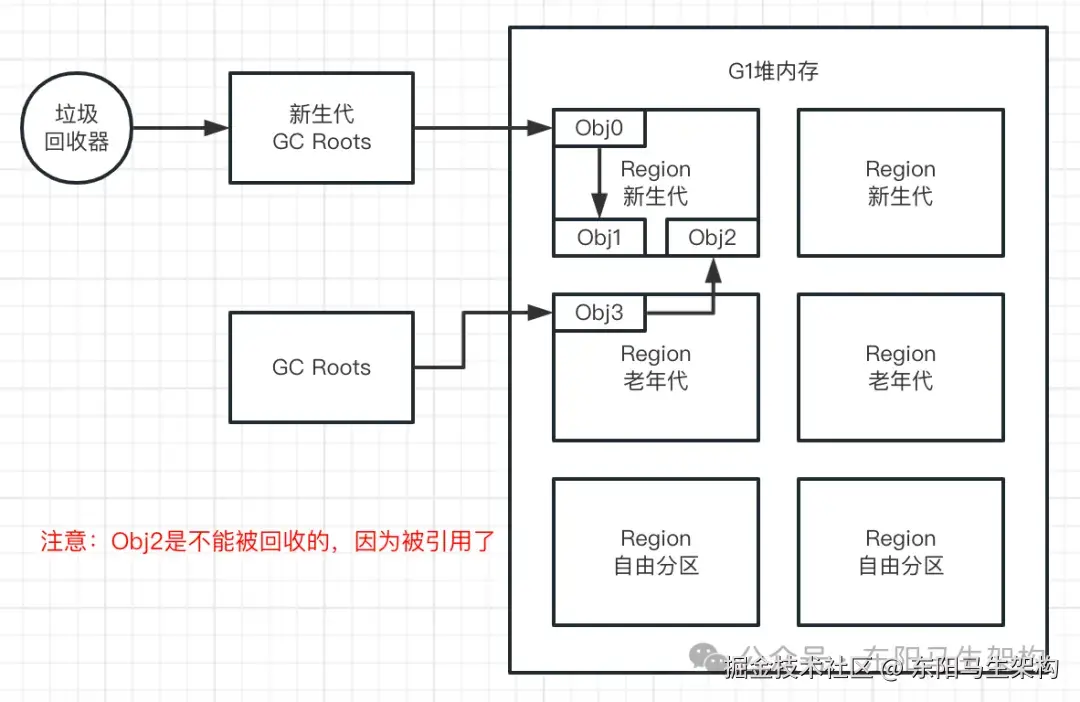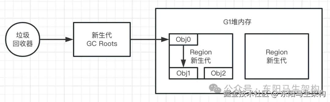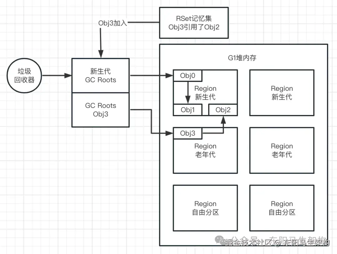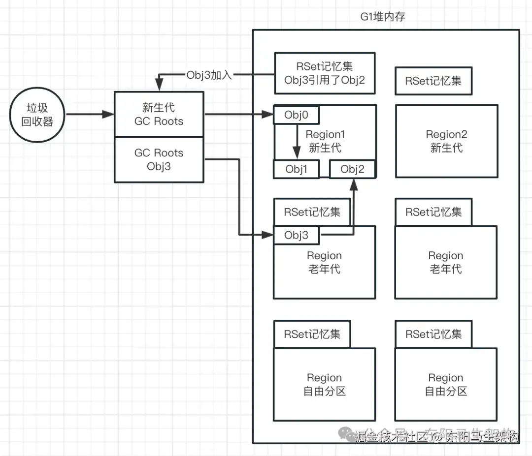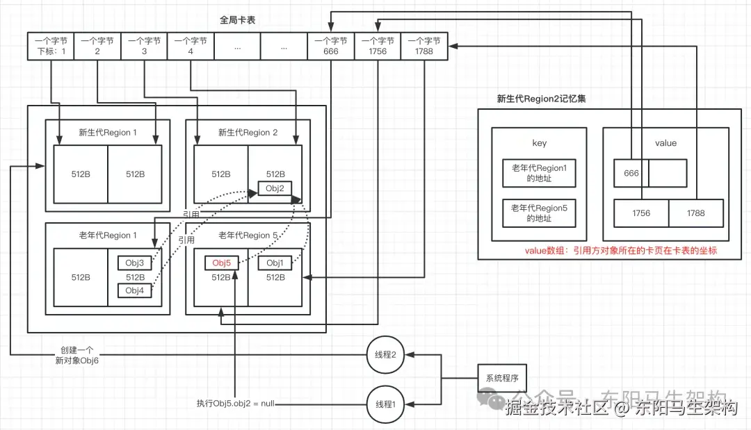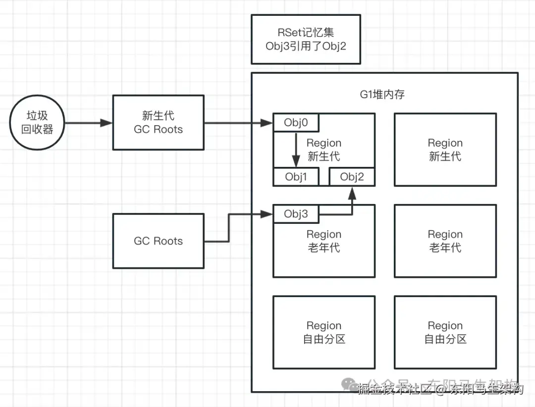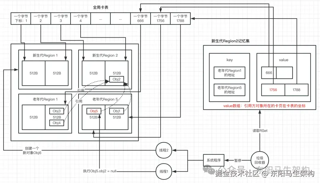 由于G1本身是有分代的,在某种特殊情况下,有一个老年代的对象引用了新生代的对象。那么此时如果要触发G1的YGC,怎么才能找到这个老年代的对象呢?如果找不到这个老年代的对象,就没办法找到它引用了哪些新生代对象。