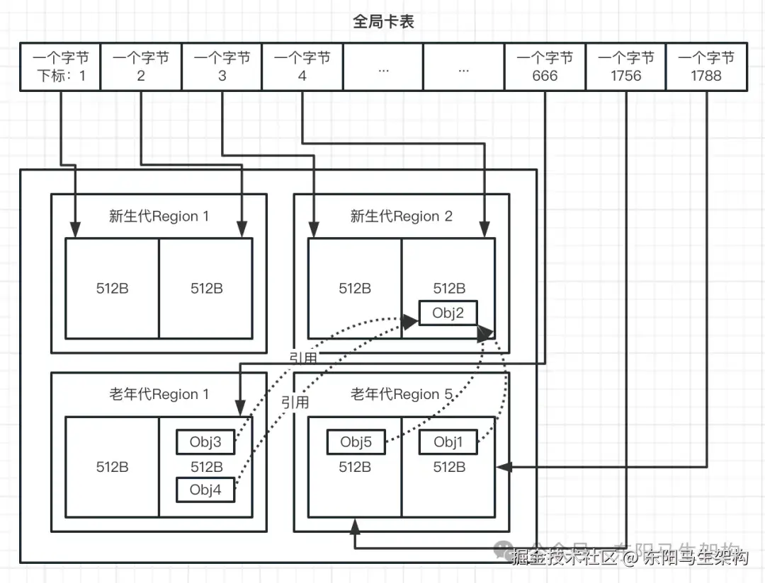 应该怎么获取这个跨代引用关系呢?想要获取这些引用关系,那么就要找到哪些老年代的对象引用了新生代的对象,也就是要找到老年代里引用了新生代对象的那些对象。