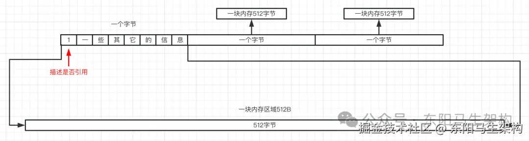 卡表和位图不一样的地方是:位图只能使用一个二进制位来描述内存的状态,也就是只能记录使用或未使用。卡表则可以描述更多的信息,比如内存是否使用、内存的引用关系等。卡表使用8个二进制位也就是一个字节来描述一块内存的使用情况。比如内存是否使用、使用了多少内存、内存的引用关系等。