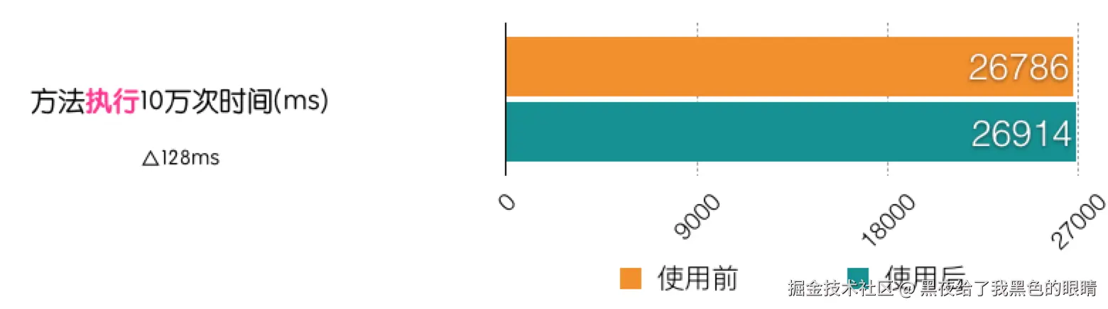 从图中可以看到,对一个只有内存运算的函数,处理前后分别执行10万次的时间增加了128ms。这是在华为4A上的测试结果。 对启动速度上的影响: