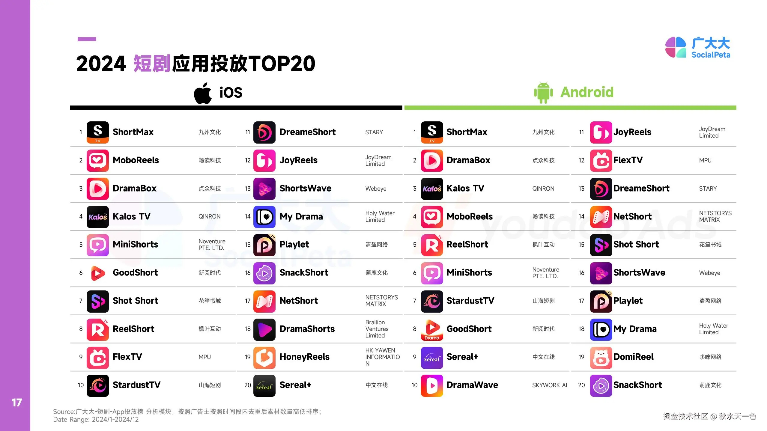 本次白皮书内容包含2024整体移动应用(非游戏)市场的广告投放策略观察,比起之前的报告内容额外将短剧和AI版块进行了深度剖析,从短剧制作流程到爆剧投流秘诀以及代表剧目的创意拆解,干货满满面面俱到。此外,我们还整合了各大海外市场的地区重点分。希望能用数据让大家看到出海市场的繁荣,并助力各位更高效地了解2024年全球非游戏移动应用市场的发展态势。