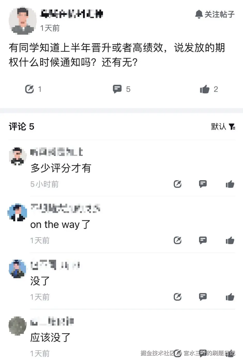 然后再回想刚开始的「50 个月年终奖」,我释怀的笑了,感觉还是太保守了,毕竟通知了也不一定什么时候发放,发放了也不一定能熬到期权归属,应该直接喊它 100 个月。