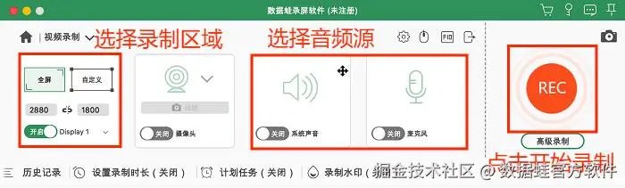使用数据 蛙录屏软件的具体操作步骤如下: