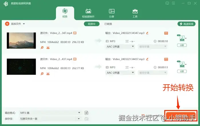 总之,无论你是需要提取视频中的背景音乐,还是为了方便在特定设备上播放,都可以尝试使用数据 蛙视频转换器将MP4视频转换成MP3音频文件。它将为你带来便捷、高效的转换体验。