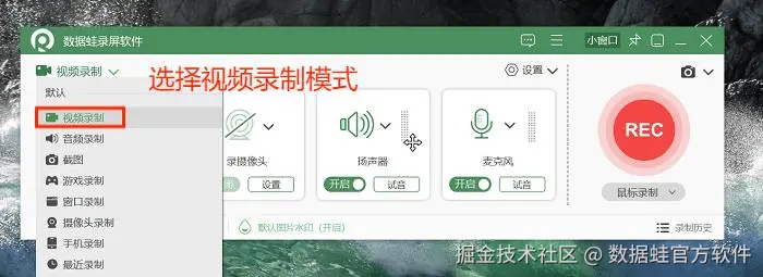 步骤1:Windows电脑可以录屏吗?首先需要你找到软件并打开,然后在软件里去选择需要的录制模式。本文以“视频录制”为例。