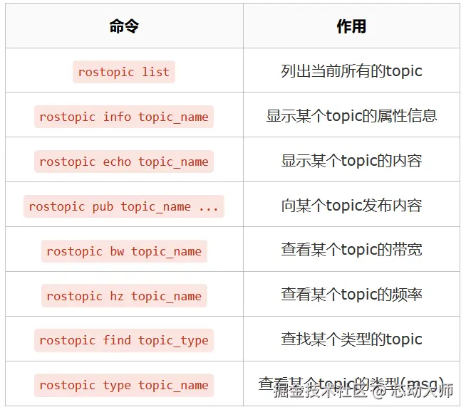 如果你一时忘记了命令的写法,可以通过rostopic help或rostopic command -h查看具体用法。