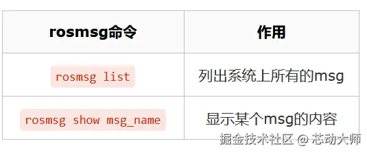 rosmsg的命令相比topic就比较少了,只有两个如下:
