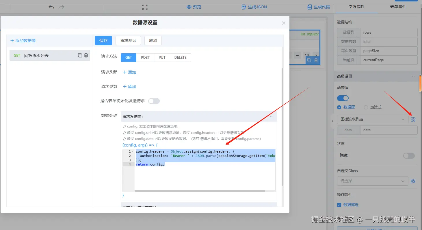 可以在【数据源设置】-【数据处理】-【发送前】加上这段代码