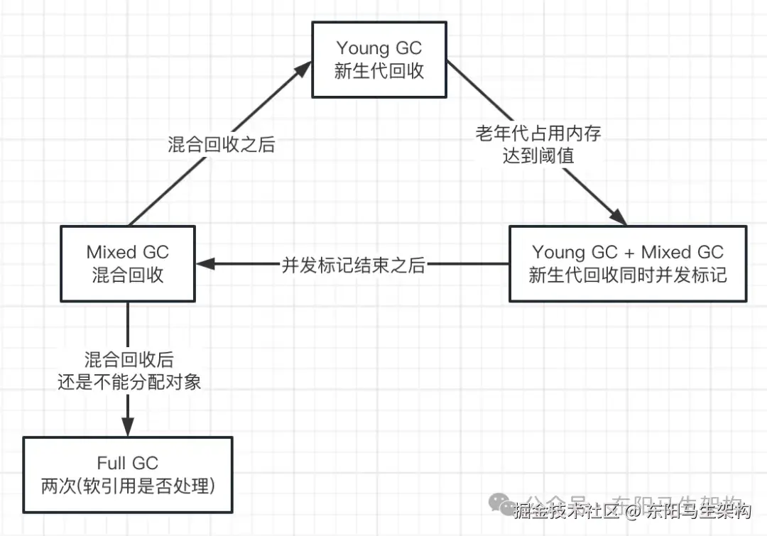 YGC、Mixed GC、FGC间的过程转换关系如下: