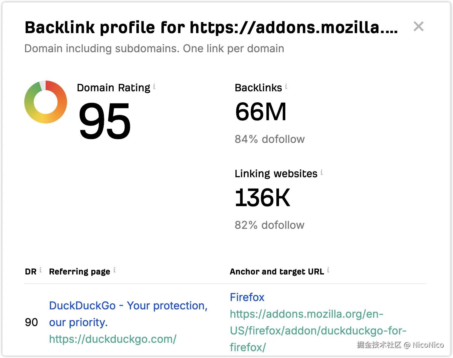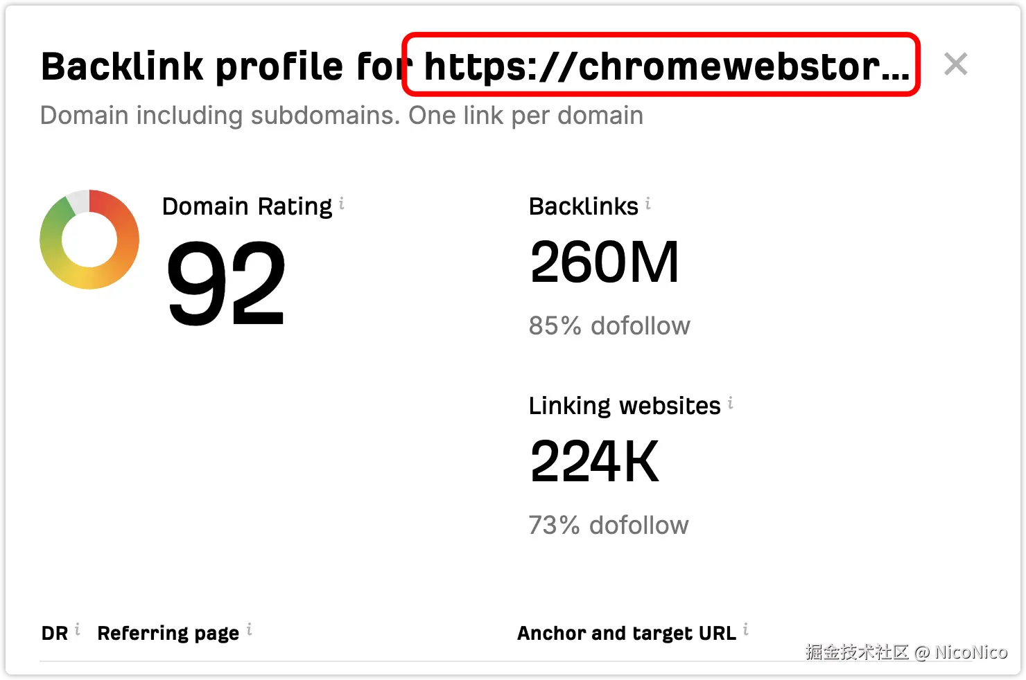 如下图,Chrome Web Store 的 DR 是 92,出海的同学都知道要拿到一个 DR 80 以上的外链有多难。而如果我们把产品上架到了多个这样的浏览器插件市场呢? 事实上,绝大部分的产品也都是这么做的。