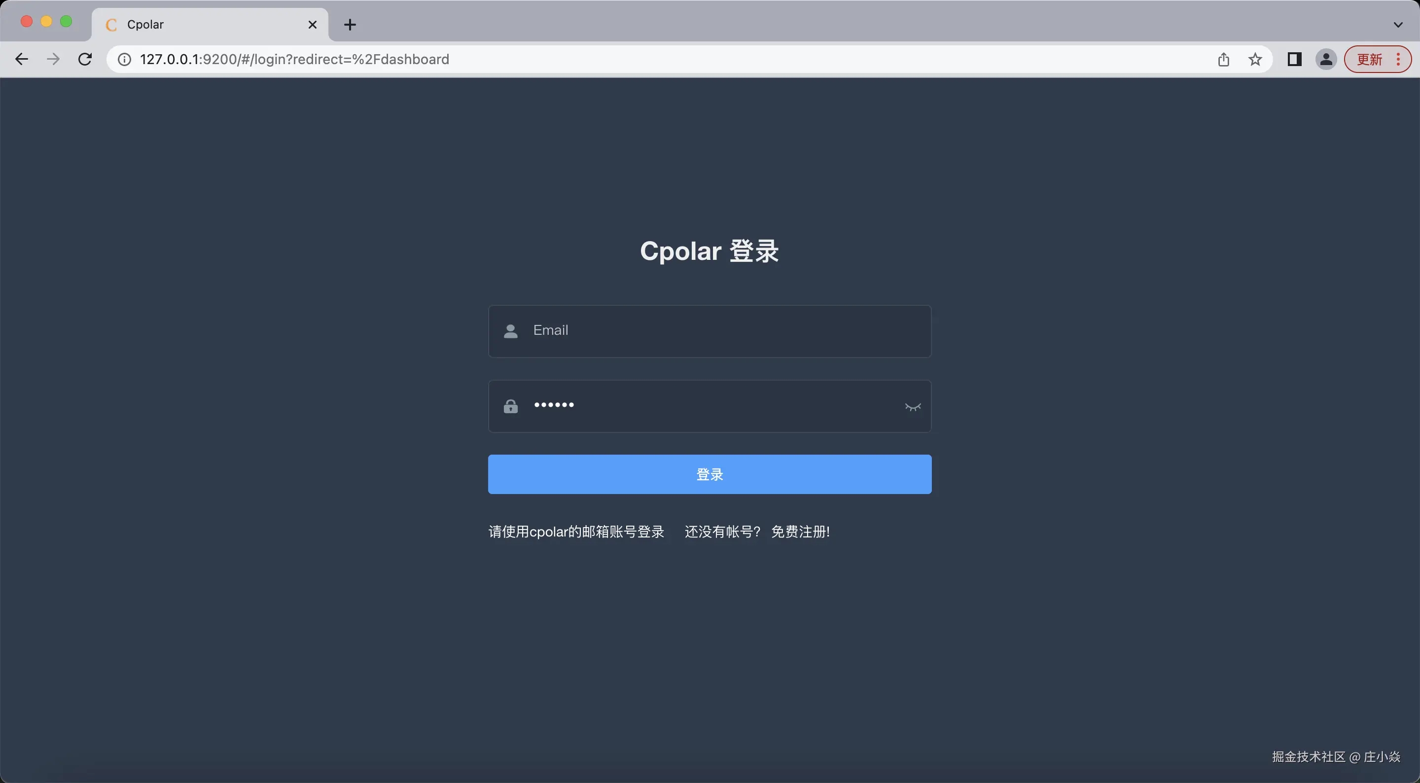 在浏览器上访问本地9200端口【http://127.0.0.1:9200/】,使用cpolar账号登录。