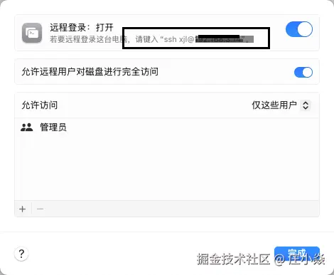 ssh MacOS用户名@公网地址 -p 公网端口号