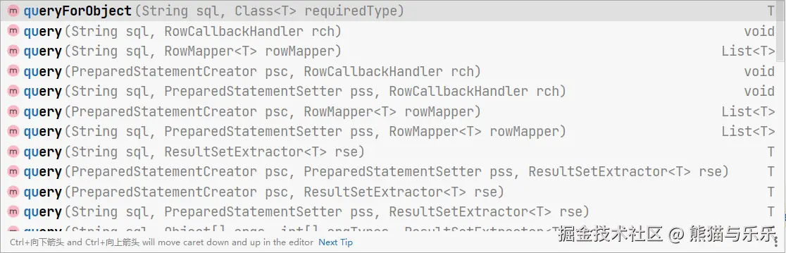 虽然JdbcTemplate基本上不会在项目中用到,但是通过阅读和学习它的源码,可以提升我们面对接口编程的能力。JdbcTemplate提供多种query和update方法用来方便地查询和更新数据。使用示例: