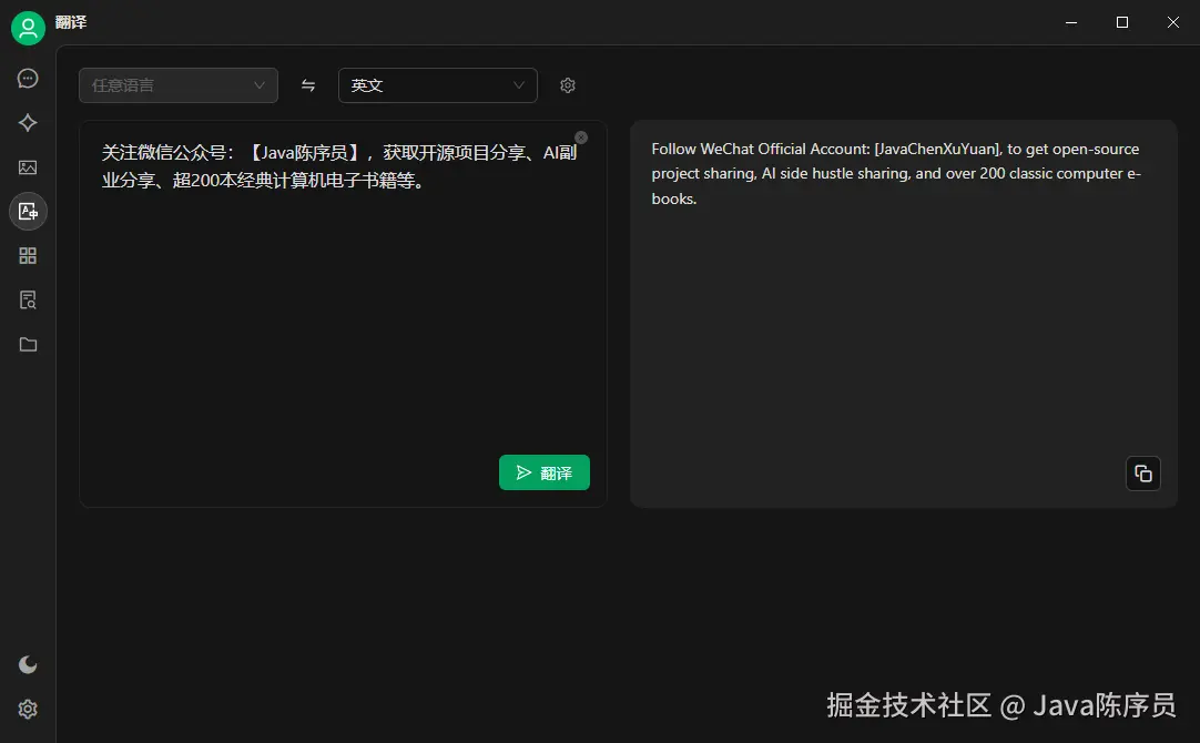 关注微信公众号:【Java陈序员】,获取开源项目分享、AI副业分享、超200本经典计算机电子书籍等。