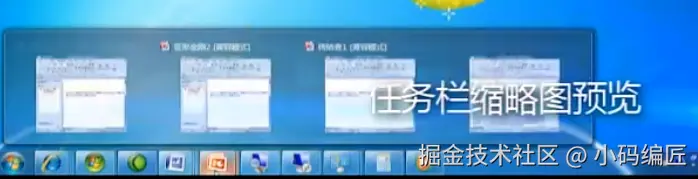 在Windows7系统上,微软首次推出任务栏缩略图预览功能。