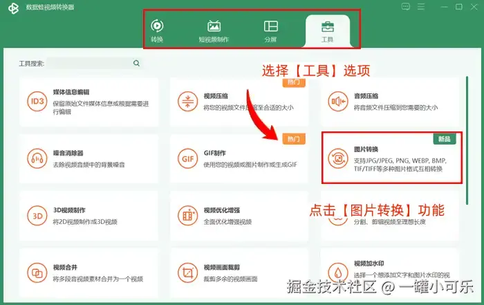 步骤1:启动数据 蛙视频转换器,选择【工具】选项,点击该选项下的【图片转换】功能,并从本地文件中添加jpg图片。