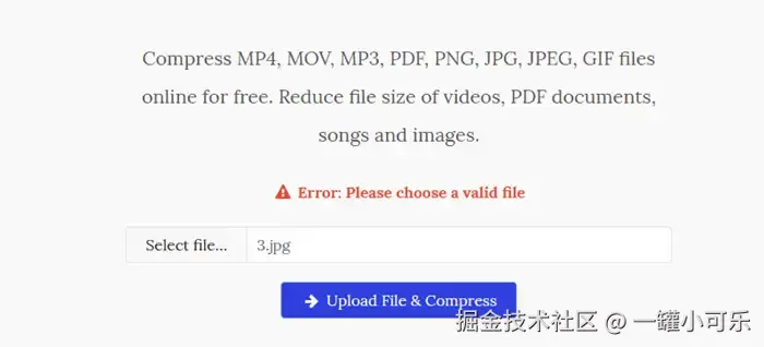 【图片压缩步骤】: Select files——Upload files &Compress。
