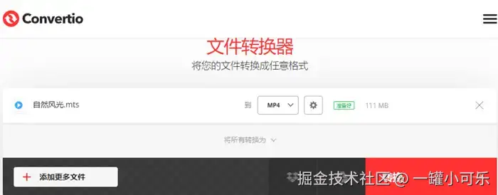 【格式转换步骤】: 视频——上传mts文件——转为MP4。