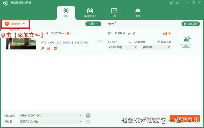 使用该应用将mts转换成MP4格式的优势在于可以自定义MP4格式的参数,如分辨率、清晰度等,还可以给视频添加字幕,最重要的是,能够使用无损转换技术,最大程度上输出无损视频。接下来介绍具体的格式转换操作步骤。