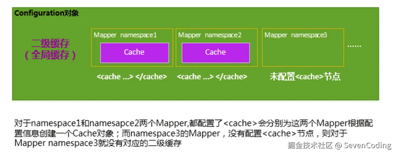 - 为每一个Mapper分配一个Cache缓存对象(使用