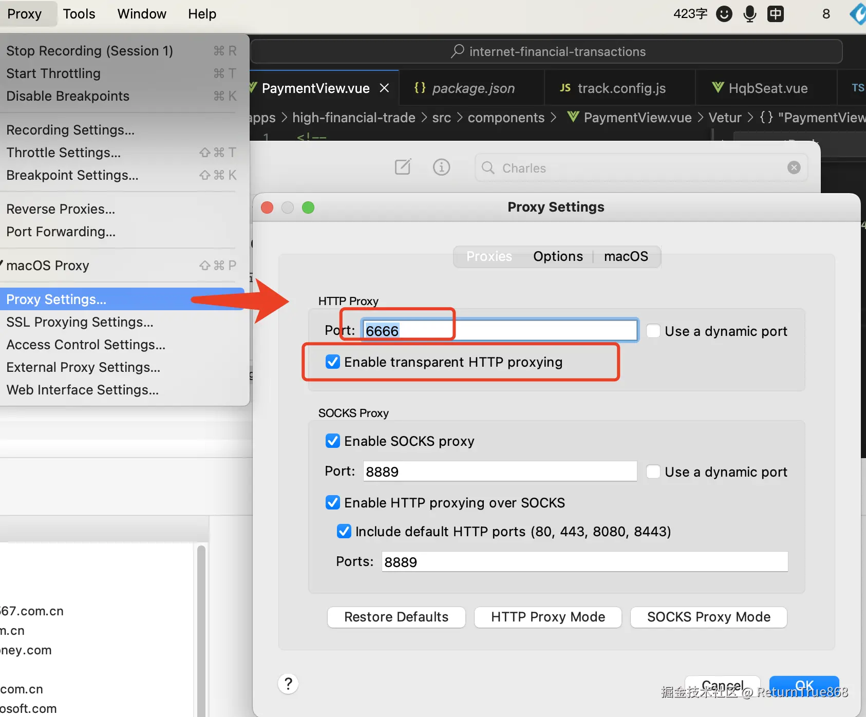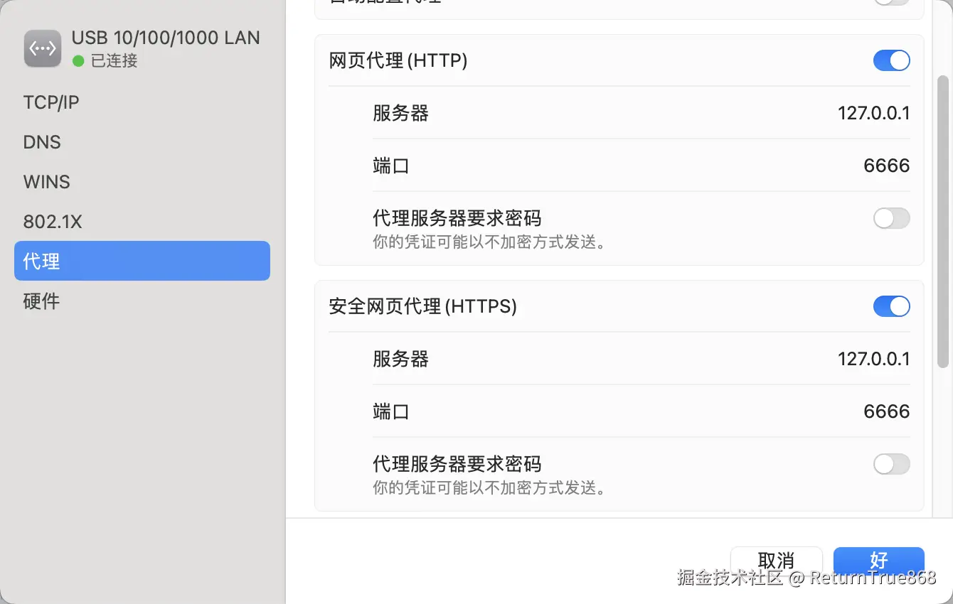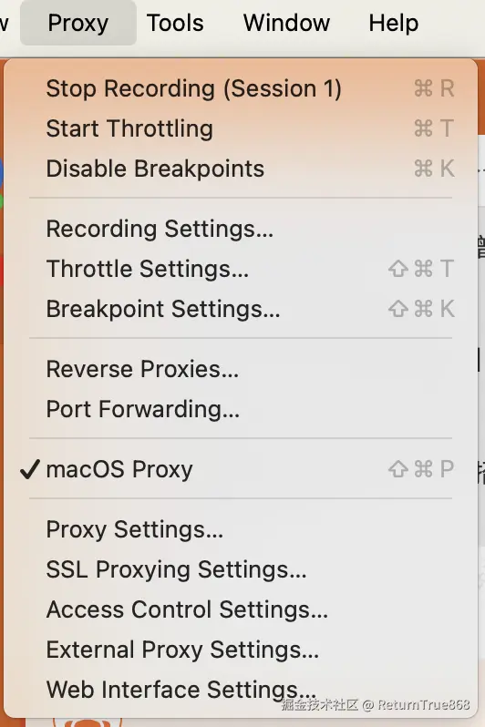 打开 Charles,点击顶部菜单栏的 Proxy -> 勾选 macOS Proxy;