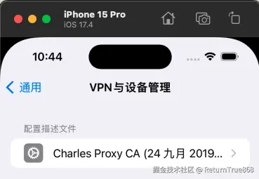 模拟器-设置-通用-VPN与设备管理-点击刚下载的描述文件安装