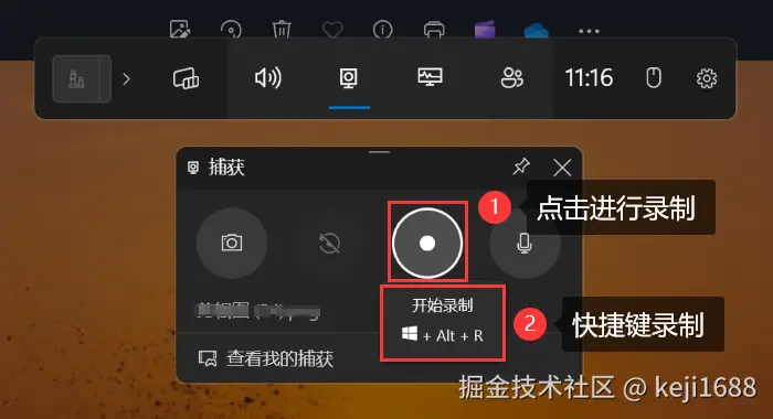 步骤2:我们也能使用 【Win+Alt+R】 进行快速的录制。