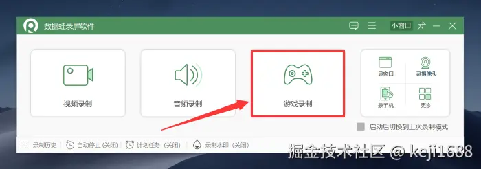 步骤2:进行游戏录制时,我们可以在主界面众多的录制模式中选择 【游戏录制】 选项进入。