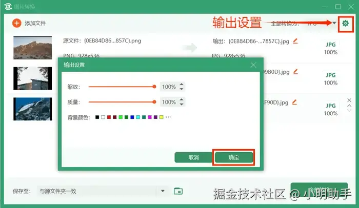 第三步:如果想要调整缩放比例、背景颜色等输出设置的话,可以点击右上角的绿色齿轮按钮进行设置。
