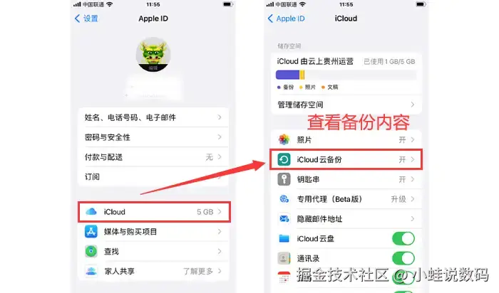 步骤1:进入iPhone的设置中,找到 【iCloud云备份】 查看是否有短信备份内容。