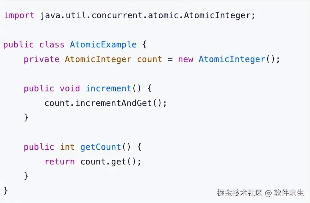 Java 提供了一系列原子类(AtomicInteger, AtomicLong, 等),用于保证操作的原子性。例如: