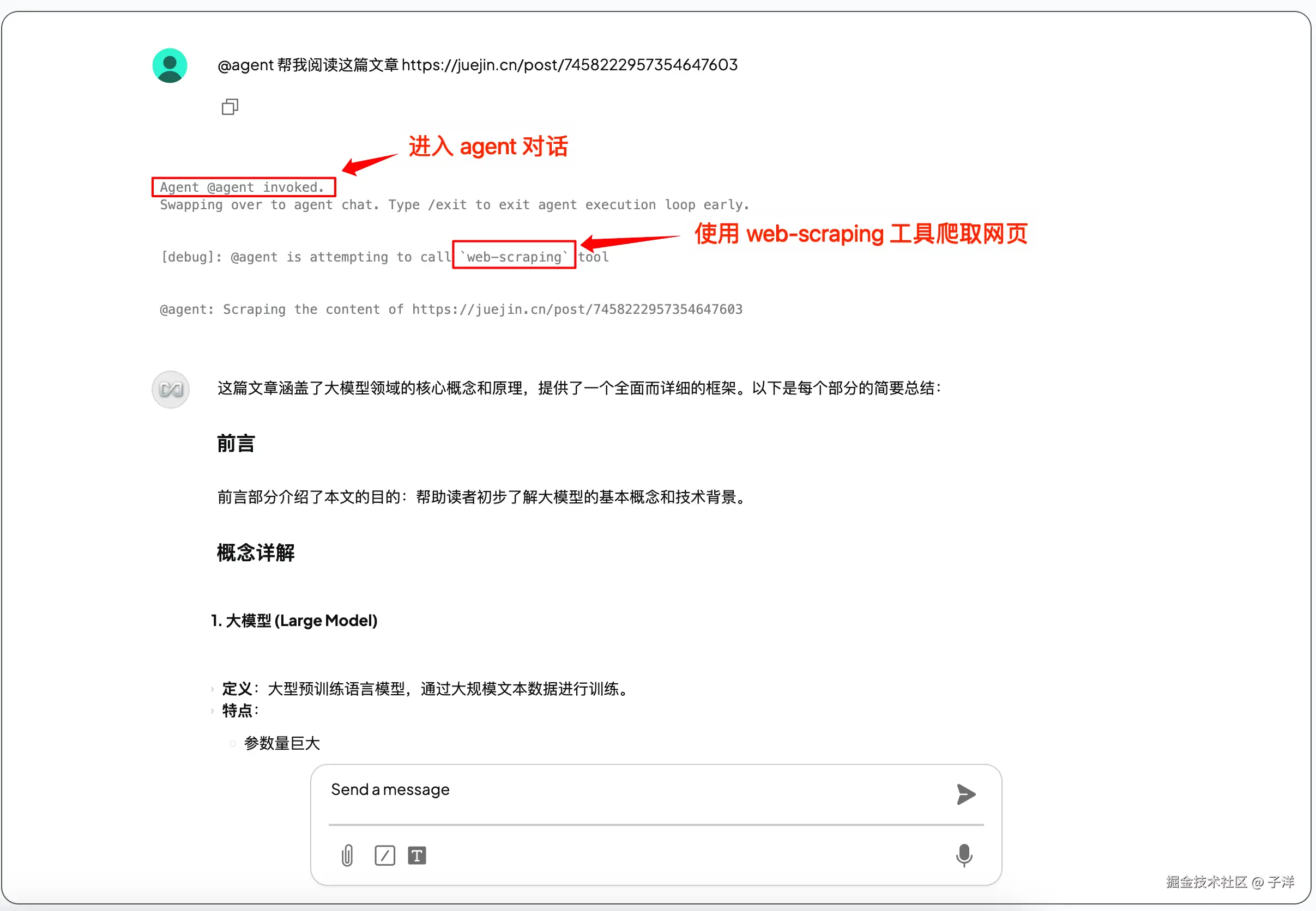 - Agent 会通过 Web Scraping 工具爬取指定页面并返回结果。