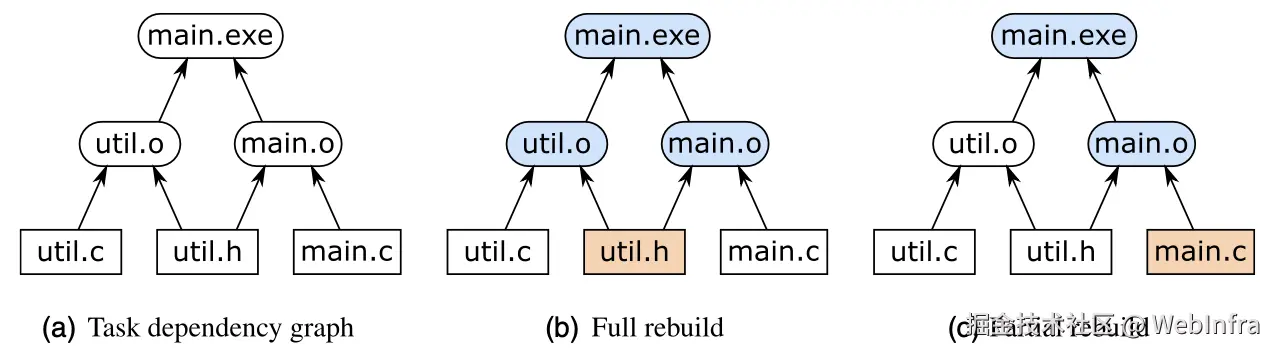 - Info:构建信息,跨构建的信息,供下次构建使用,比如 Make 中文件的修改时间就是它的 Info,可以理解为 bundler 中的缓存。