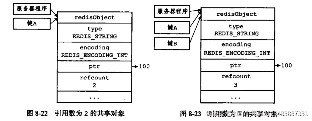 refcount为n; - Redis在初始化服务器时,会创建一万个字符串对象(0~9999的字符串对象),当服务器需要用到这些值对象时,服务器会使用这些共享对象,而不是创建新对象;