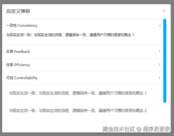 关于 MessageBox 弹框,Element UI 官方的介绍是:从场景上来说,MessageBox 的作用是美化系统自带的 alert、confirm 和 prompt,因此适合展示较为简单的内容。如果需要弹出较为复杂的内容,请使用 Dialog。不过,MessageBox是可以自定义配置内容的,因此我想尝试使用 MessageBox 来展示复杂的内容,实现一个公共的全局弹框功能。