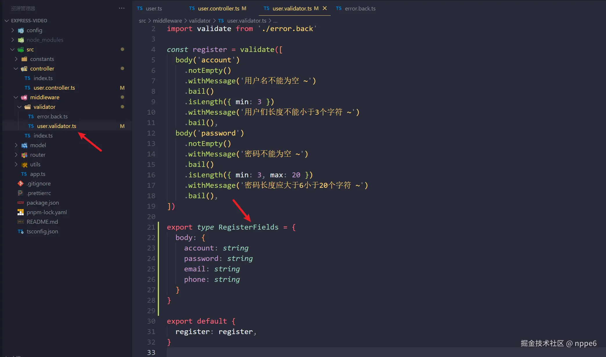创建validator中间件 对参数校验 继续 封装