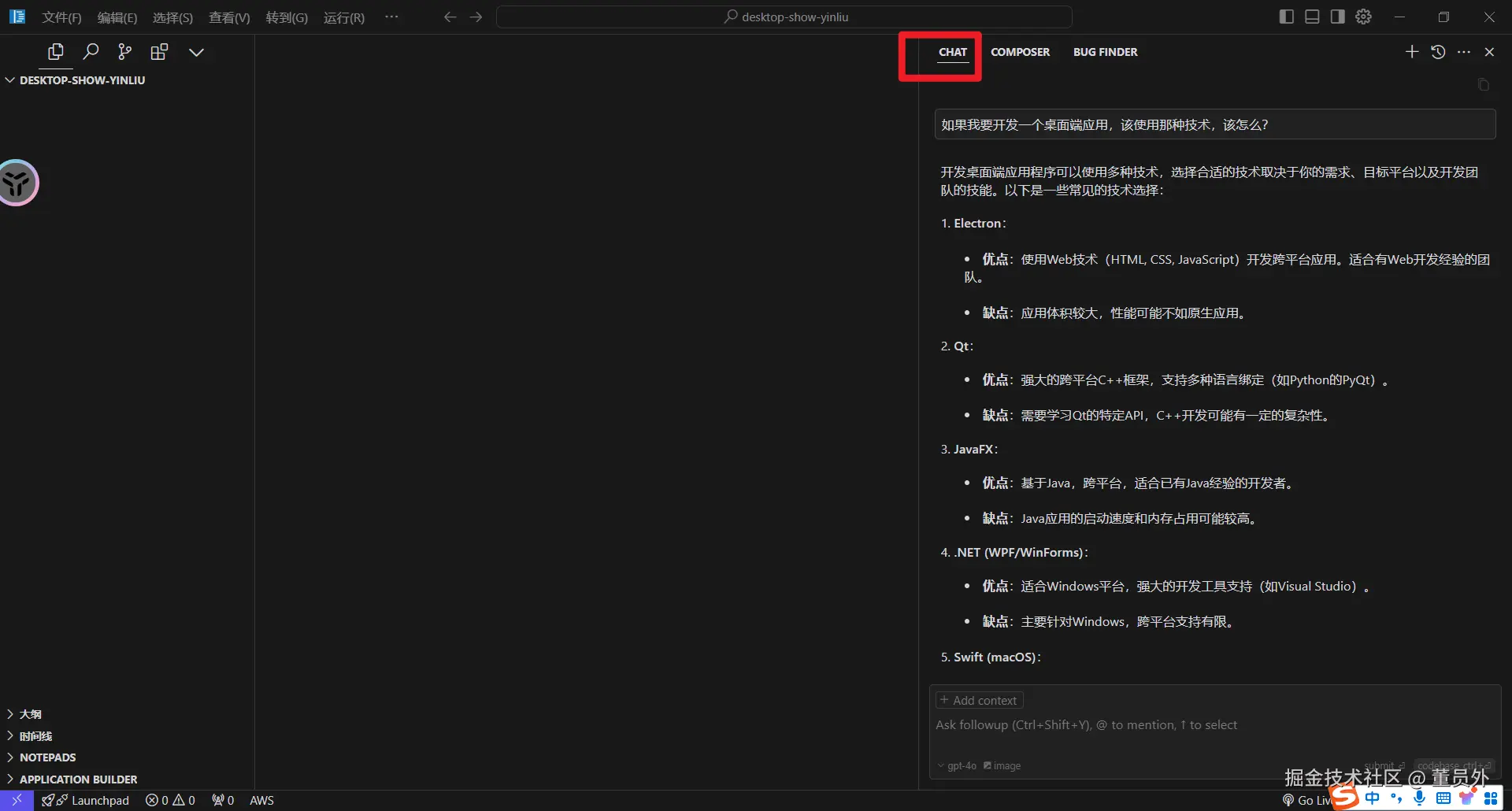 Cursor 提供了两种人机对话方式,Chat和Composer