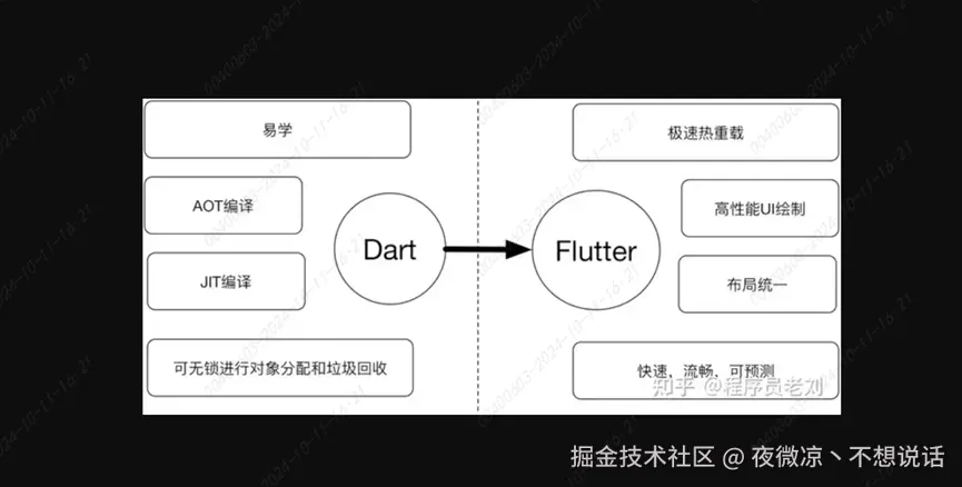 基于dart可AOT(预编译,生产物速度快),可JOT,调试快;