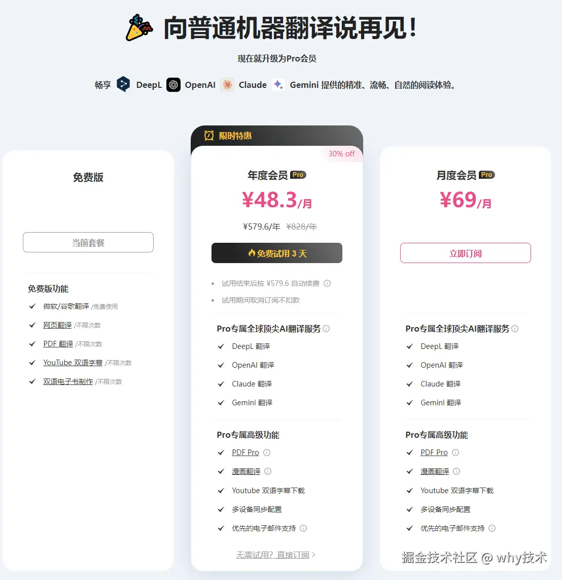 付费版的话,大概 50 元一个月,对于经常需要浏览外文资料的朋友应该还是有帮助: