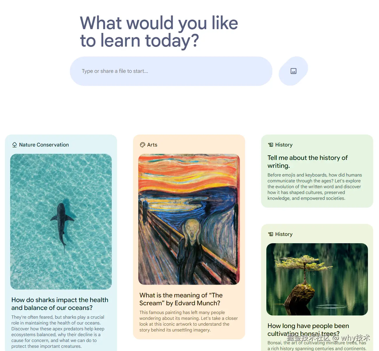 Learn About 是 Google 基于 AI 研发的一个互动式学习网站。