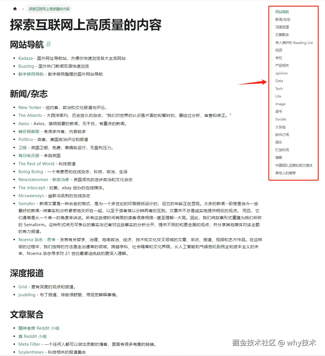 另外,在使用说明里面,我还看到了他们整理的“一个高质量的英文网站列表”: