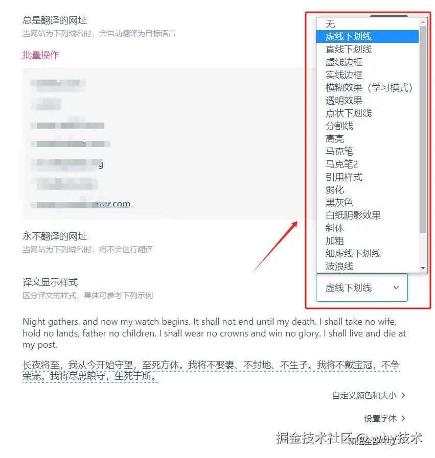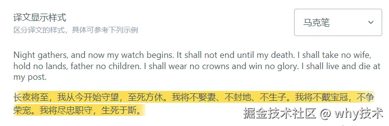 在设置里面,还支持了非常多的“译文显示样式”: