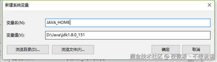 1系统变量名为JAVA_HOME,变量值我的是:D:\Java\jdk1.8.0_151 ,点击“确定“