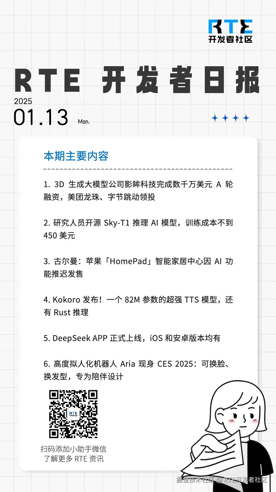 我们欢迎更多的小伙伴参与「RTE 开发者日报」内容的共创,感兴趣的朋友请通过开发者社区或公众号留言联系,记得报暗号「共创」。